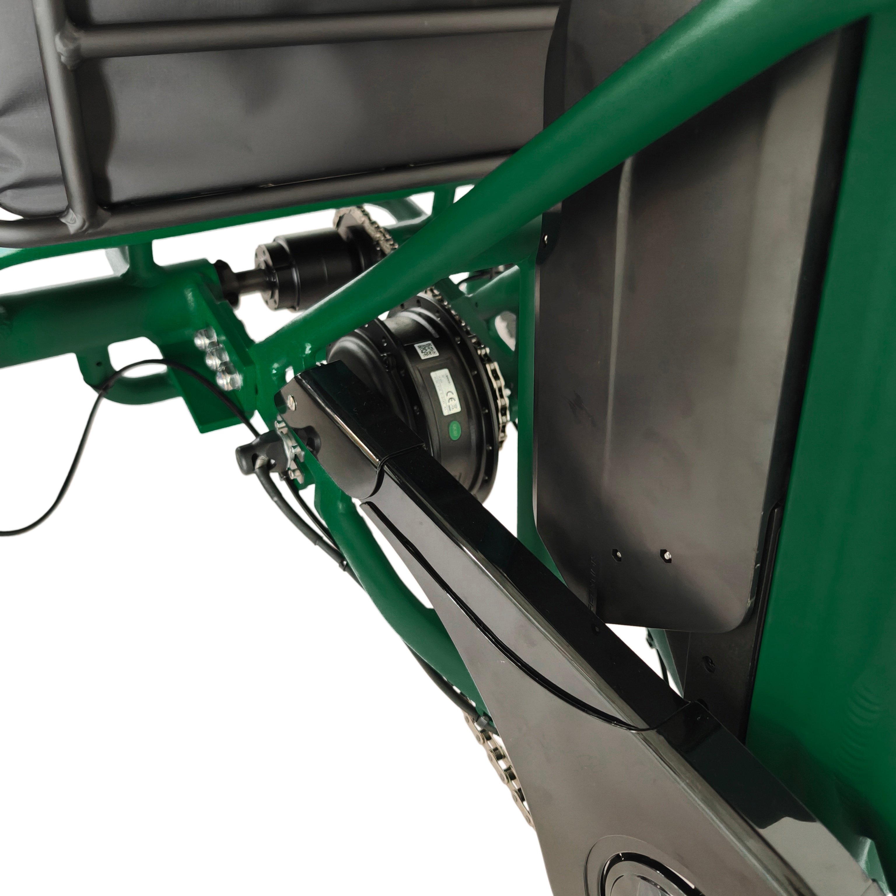 Our new spec for late 2025 includes a 7-speed internal gear hub for smooth and quiet shifts and a front drive that contributes to 3-wheel drive power. When you want an extra push, just activate the pedal assist, select your preferred level from 1 to 5, and enjoy a smooth, effortless ride. With electric assist, just press the ‘+’ button to pick up the pace, or if you need more assistance on hills, and glide away with ease.